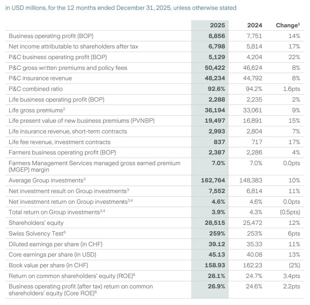 2月19日,拥有超过150年历史的全球保险巨头「苏黎世保险集团」,正式公布2025年全年财务报告。
