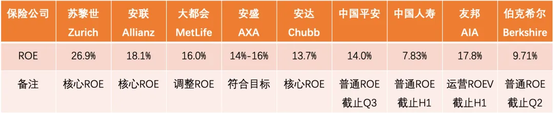 光说不对比,不足以体现苏黎世的实力。给大家贴一组其他全球保险顶流2025年的核心ROE数据,高下立判:
