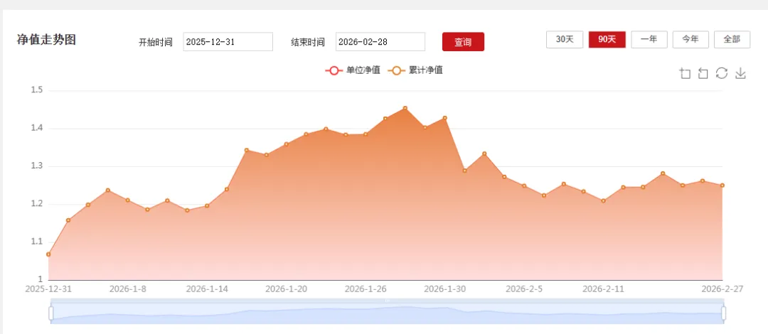 尽管2月净值跌幅较多,东方阿尔法科技智选混合发起A在2025年1-2月净值仍累计上涨17.06%。