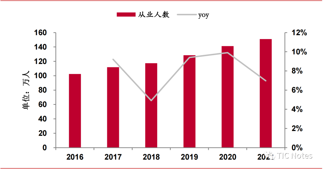 中国检测行业尚处于快速发展阶段。对比全球市场,中国检测行业起步较晚,增速远高于全球市场。截至2021年底,我国共有检验检测机构51949 家,同比增长 6.19%。全年实现营业收入4090.22亿元,同比增长14.06%。从业人员151.03 万人,同比增长6.97%。