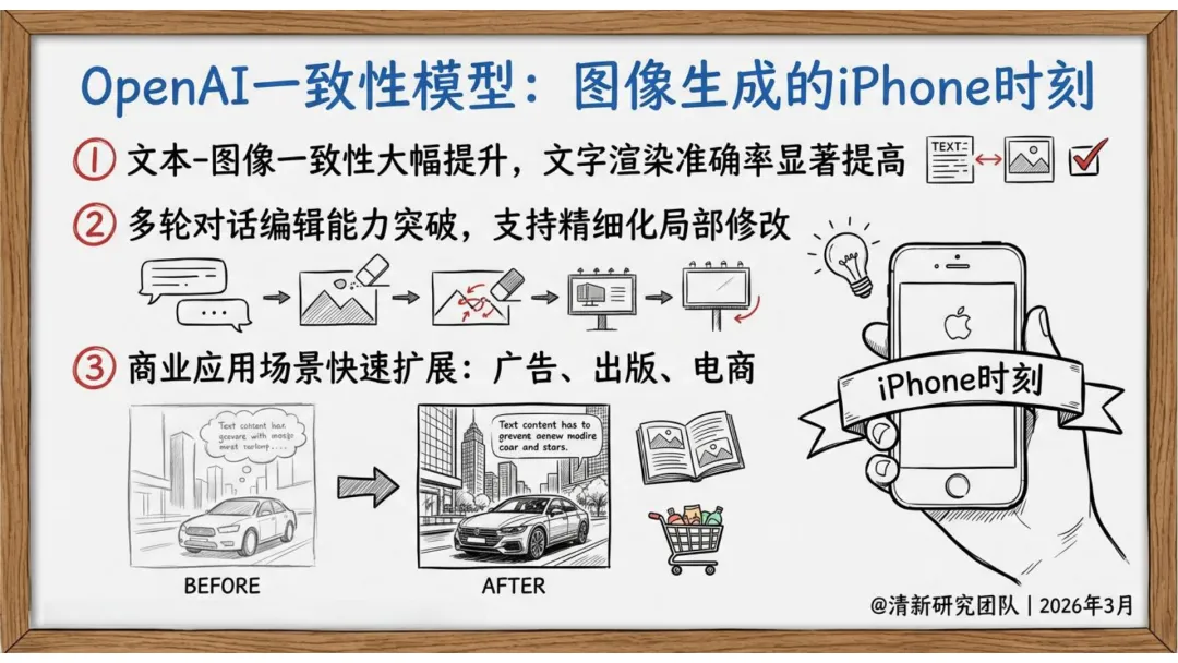 多模态架构突破:如OpenAI一致性模型实现了文本-图像的高一致性,支持精细化编辑,推动广告、出版等商业场景落地。