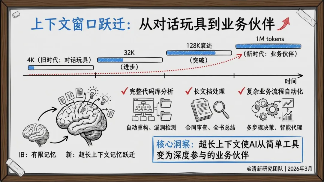 上下文窗口跃迁:超长记忆能力使AI从“对话玩具”升级为“业务伙伴”,支持复杂任务处理。