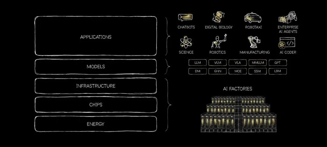 黄仁勋的观点很物理:AI生成的每一个token,本质都是电子的流动和热量的交换。芯片层决定了算力成本,基础设施层演变为“AI工厂”,模型层因开源而加速创新,应用层催生新的软件范式——但每一层都建立在能源之上。没有能源,其余四层都是空中楼阁。