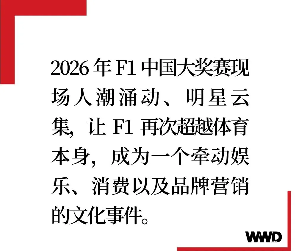 3 月 13 日至 15 日,上海的赛车热达到顶峰,2026 年 F1 中国大奖赛现场人潮涌动、明星云集,让 F1 再次超越体育本身,成为一个牵动娱乐、消费以及品牌营销的文化事件。