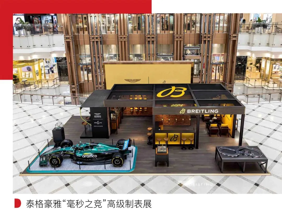 百年灵也在上海新世界新丸中心打造了“F1 驭时赛道”限时概念空间,并展出航空计时 B01 计时码表 43 Aston Martin Aramco Formula One Team 限量版。