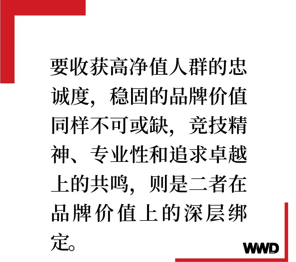 精准计时展现的是腕表品牌技术上的实力,但要收获高净值人群的忠诚度,稳固的品牌价值同样不可或缺,竞技精神、专业性和追求卓越上的共鸣,则是二者在品牌价值上的深层绑定。