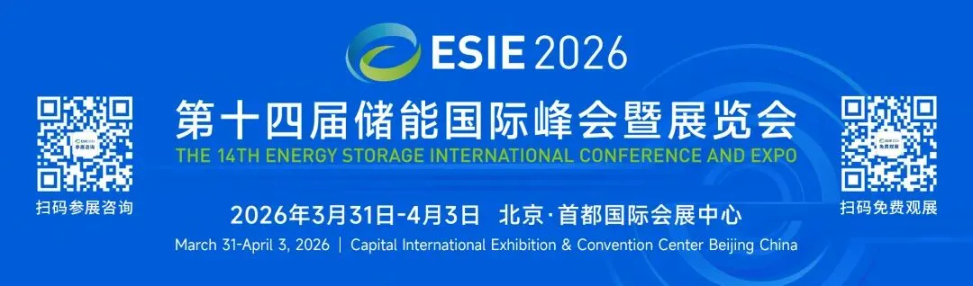 由中关村储能产业技术联盟、中国能源研究会、中国科学院工程热物理研究所主办的第十四届储能国际峰会暨展览会ESIE 2026将于2026年3月31日-4月3日,在北京·首都国际会展中心盛大开幕。