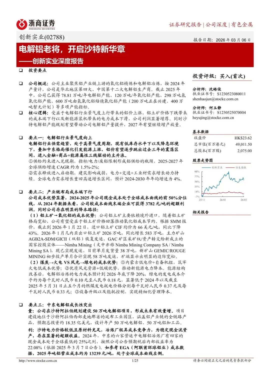 回复暗号:创新实业(02788.HK)深度报告:电解铝老将,开启沙特新华章-260306-浙商证券-25页