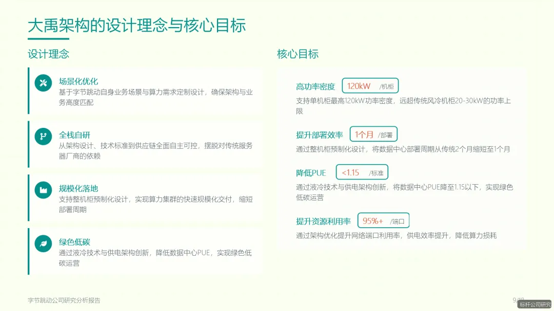 字节跳动的芯片自研并非简单对标海外巨头的通用芯片产品,而是形成了一套贴合自身业务特点与 AI 战略的设计理念,在架构设计上呈现出鲜明的差异化特征,与阿里巴巴、百度等国内同行的芯片布局形成了明显的区隔。本章节将全面拆解其芯片架构的核心设计理念与差异化优势,相关信息来源于《字节自研芯片团队超千人已形成四大产品线.pdf》、《字节跳动造芯突围战.pdf》、《字节跳动 SeedChip 自研芯片信息汇总.pdf》、《液冷成 AI 算力刚需字节全链条布局架构技术供应链一次看懂.pdf》等调研文档。