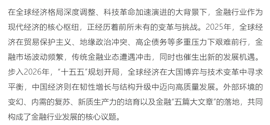 金融行业现状及2026年发展趋势