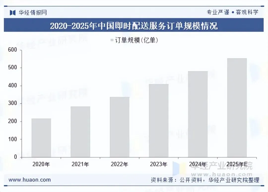 即时配送车辆高频启停、行驶里程固定,新能源皮卡的用电成本远低于燃油车,并且新能源皮卡的保养流程简单,无需频繁更换机油,保养频次和费用都远低于燃油车型,契合配送从业者对低成本运营的核心诉求。2024年,中国即时配送服务订单规模约为482.8亿单。
