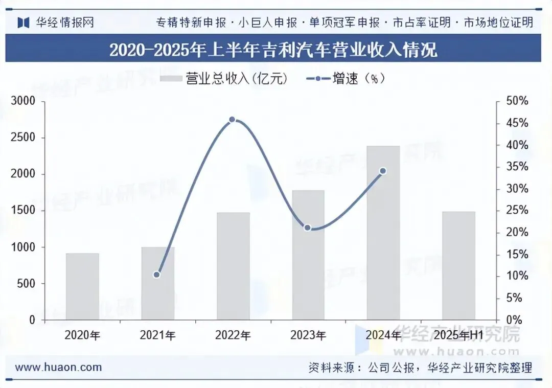 吉利汽车控股有限公司成立于1997年,是一家从事汽车研发、制造及销售的投资控股公司,产品涵盖轿车、SUV、新能源及电气化汽车等类型。吉利雷达作为吉利汽车集团旗下皮卡品牌,2022年7月12日由浙江吉利控股集团正式发布,该品牌基于SEA浩瀚架构打造中国首个原生新能源皮卡平台M.A.P雷达瀚海平台,2024年推出雷达地平线车型并在泰国上市四驱纯电皮卡,2025年1月并入吉利汽车集团后推出混动版地平线及金刚PHEV车型,实现新能源皮卡产品线全覆盖。2025年上半年,吉利汽车营业总收入为1503亿元。
