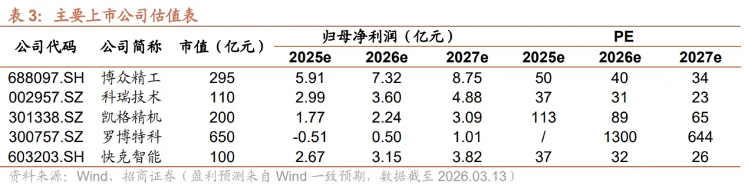另一方面,过去光模块生产线对人工依赖度较高,主要玩家产能出海是大趋势,为了提高海外产能的生产效率,自动化设备的需求持续增加,因此建议重点关注光模块设备行业。核心标的包括、、、、等。