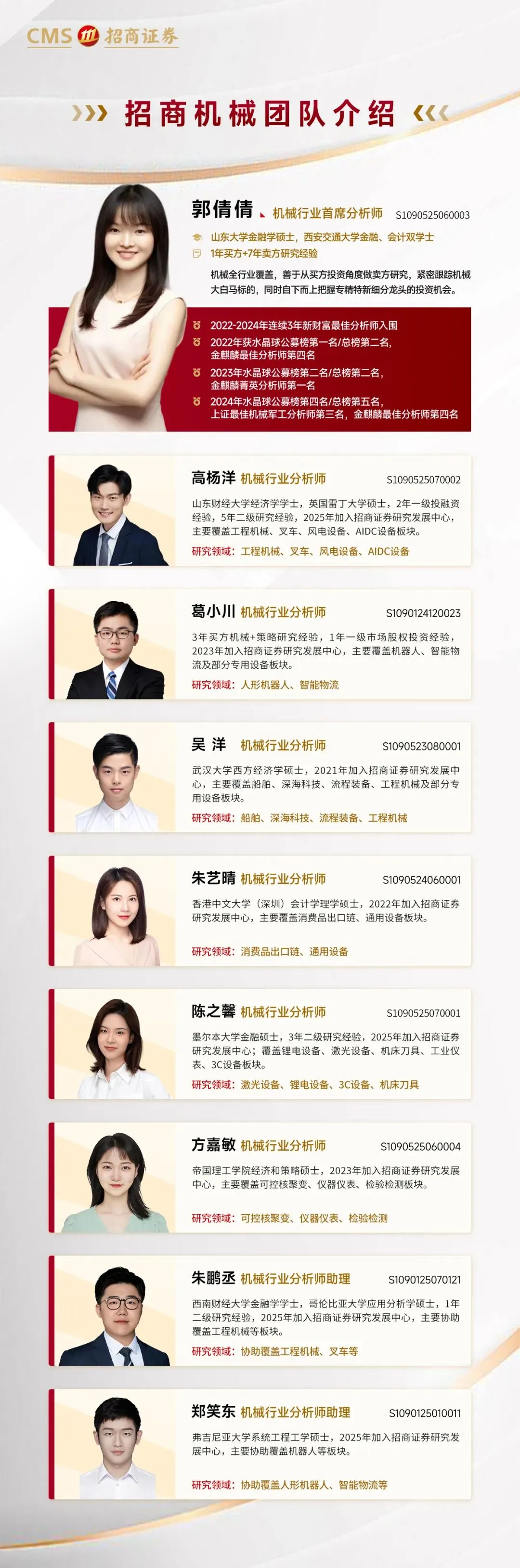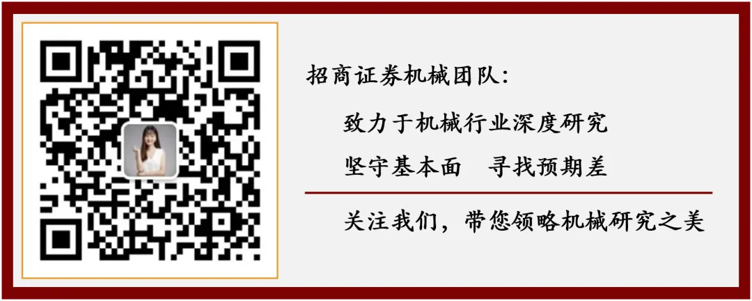特别提示:本公众号为招商机械郭倩倩团队的个人订阅号,不是招商证券股份有限公司(下称“招商证券”)研究报告的发布平台。本公众号只是转发招商证券已发布研究报告的部分观点,订阅者若使用本公众号所载资料,有可能会因缺乏对完整报告的了解或缺乏相关的解读而对资料中的关键假设、评级、目标价等内容产生理解上的歧义。