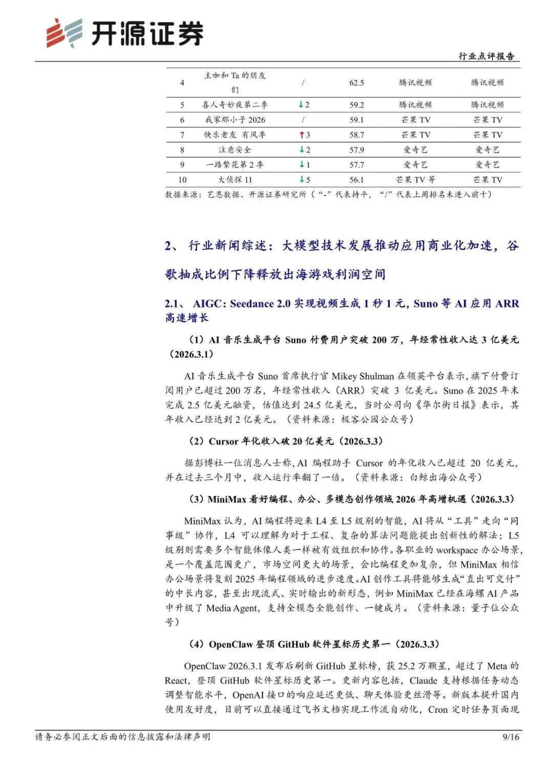 传媒行业点评报告:OpenClaw出圈,政策再助力,继续布局AI及游戏-260309-开源证券-16页