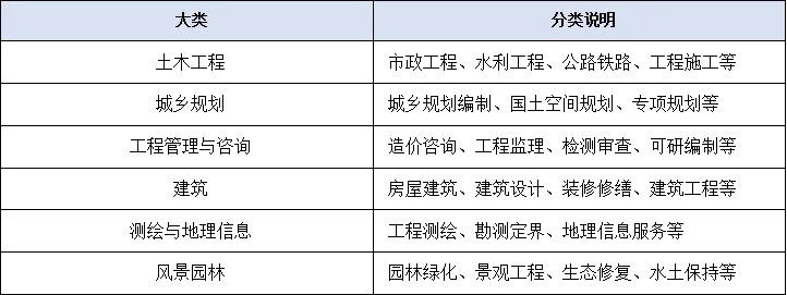 房屋建筑、建筑设计、装修修缮、建筑工程等建筑类项目市场规模与市政工程、水利工程、公路铁路、工程施工等土木工程类项目市场规模合计占比超 94%,是大建筑行业的绝对核心板块。而工程管理与咨询、风景园林、城乡规划、测绘与地理信息等细分服务板块占比相对较低,合计不足6%。