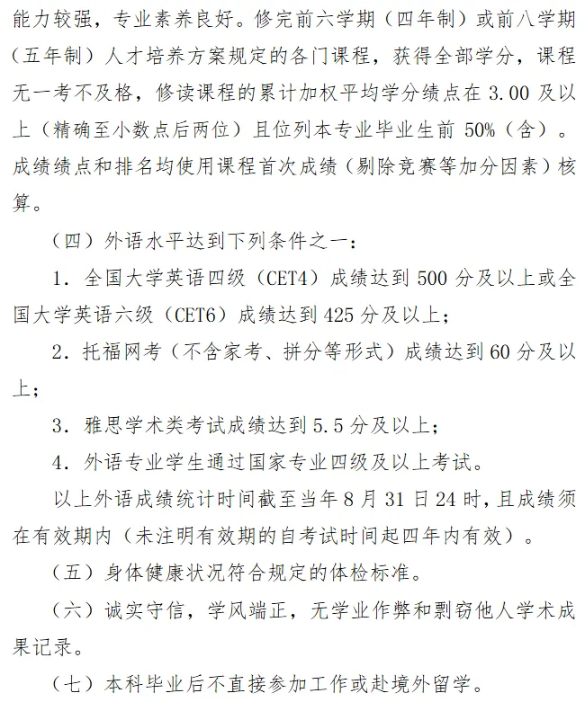 本院校保研政策、推免细则