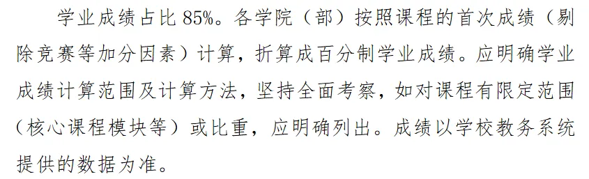 综合考评分=学业成绩×85%+综合素质评价×7.5%+学术及创新成果×7.5%