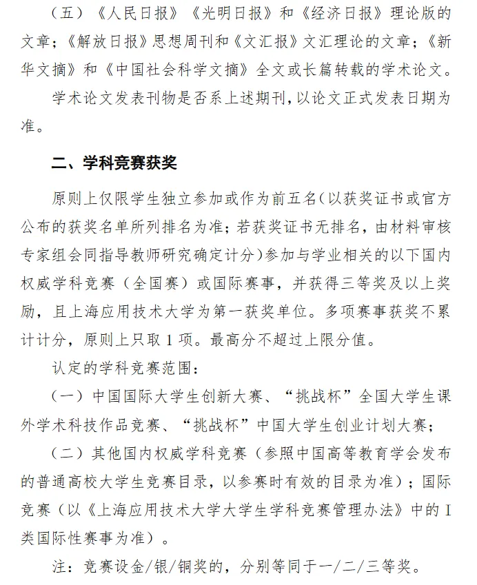 学术及创新成果部分包括学生取得的创新成果和竞赛获奖。同一方面(包括创新成果和竞赛获奖2个方面)有多项成果的,最多取1项参与计分,且总分不得超过上限分值(100分)。