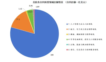 该防务合同各领域所授予总额对比饼状图
