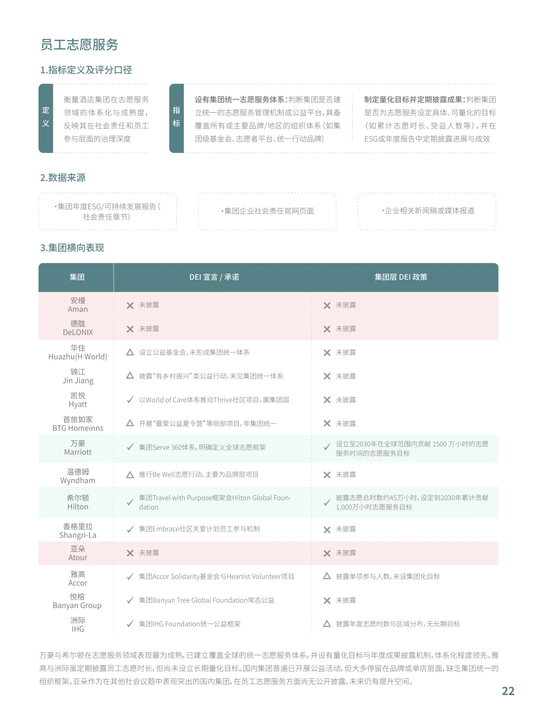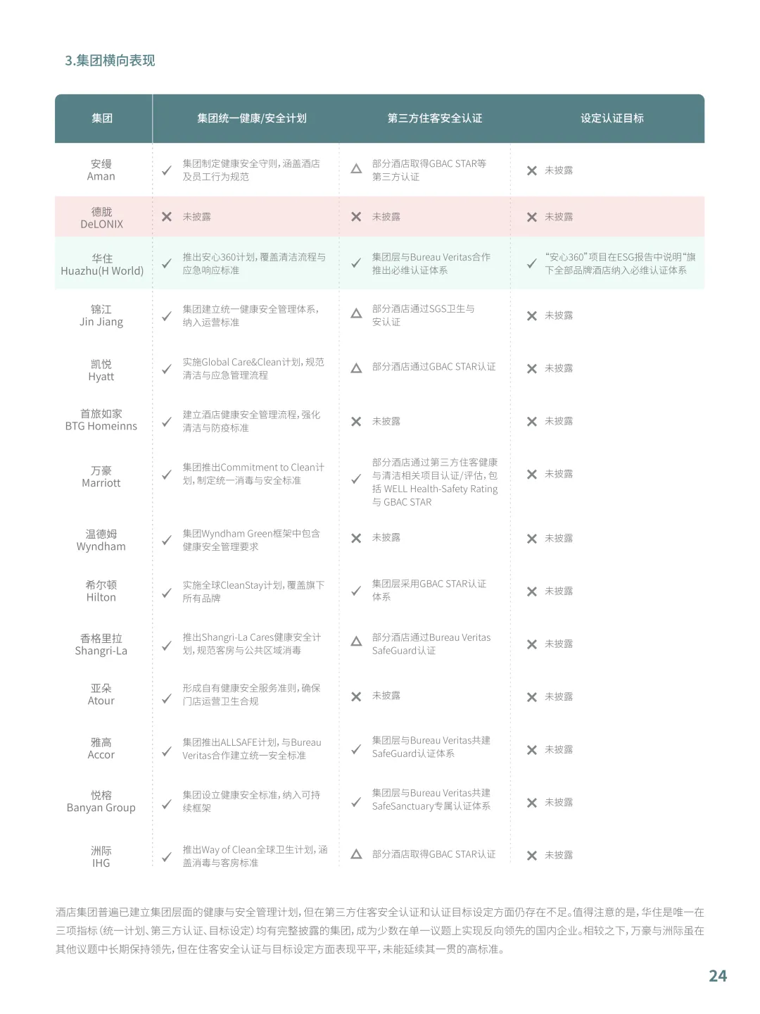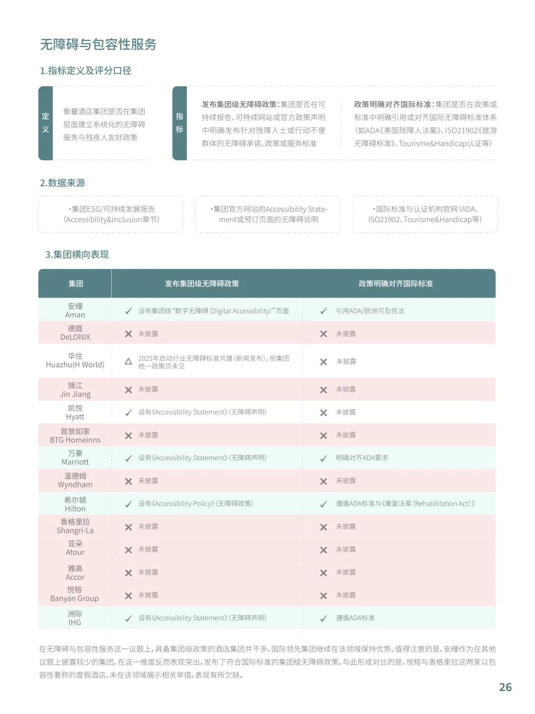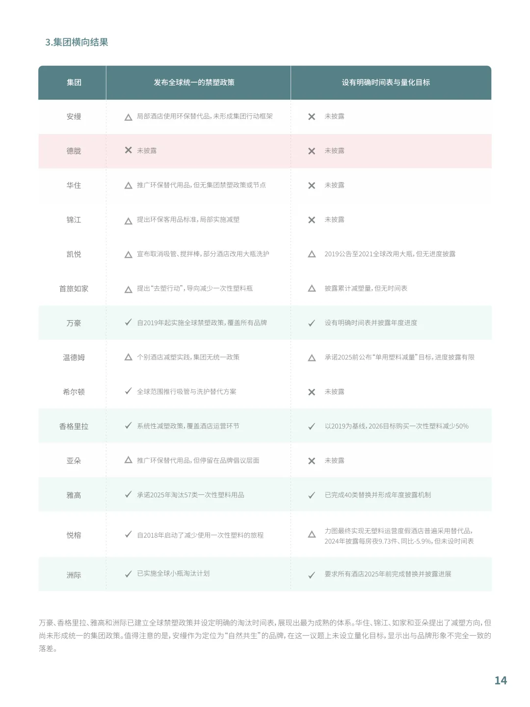 报告聚焦全球酒店行业可持续发展转型,以十四家主流酒店集团为研究样本,构建集团、品牌、单店三层对比体系,系统分析六大核心议题。研究基于公开 ESG 报告、国际认证数据与行业标准,从战略披露、实践落地到外部验证全方位呈现行业现状。行业呈现明显分层特征,国际集团多已建立完整的可持续治理体系,在碳减排、废弃物管理等领域设有量化目标与追踪机制。本土集团虽启动 ESG 披露,但多停留在倡议层面,体系化管理尚处起步阶段。品牌层成为竞争力关键载体,部分领先品牌已形成独立可持续定位与实践路径。可持续实践已从单一环保举措转向全价值链整合,涵盖生态保护、净零运营、循环利用、健康体验、员工关怀与社区共建。报告通过典型案例揭示,成功实践需打通战略传导、体验设计与多方共创,让可持续从管理议题转化为品牌核心价值与用户可感知的生活方式。