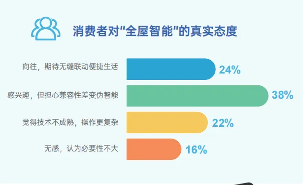 智能设备的体验割裂,则是行业“技术崇拜”背离用户需求的典型体现。近年来,全屋智能成为家居行业的热门赛道,众多品牌纷纷布局智能单品,但从观察者角度看,多数企业陷入功能堆砌的误区,忽视了以人为本的核心逻辑。数据显示,45%的受访者面临不同品牌设备无法互联互通的困境,多个控制APP、操作复杂、联动失灵等问题,让智能生活反成负担。更值得深思的是,仅24%的消费者明确向往全屋智能,38%的人群因担心兼容性问题持观望态度。品牌为争夺生态壁垒造就的“信息孤岛”,最终让消费者为行业的竞争博弈买单,背离了智能简化生活的核心初衷。