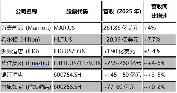 以下整理基于已公开的2025年全年数据(针对已发布公司)及前三季度/中期数据推算或机构预测(针对未发布全年报公司),2025年主要酒店管理公司财务数据对比表。