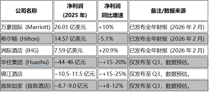根据现有公开信息,截至2026年3月18日,部分酒店集团已发布2025年全年财报(如万豪、希尔顿、洲际),而部分国内公司(如华住、锦江、首旅)仅发布了2025年前三季度或中期报告,全年正式年报可能尚未完全披露或正在陆续发布中。