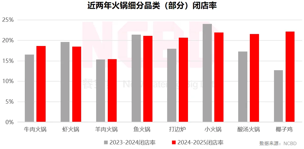 8、从闭店率来看,2024—2025年火锅闭店率与上一年几乎一致,保持稳定
