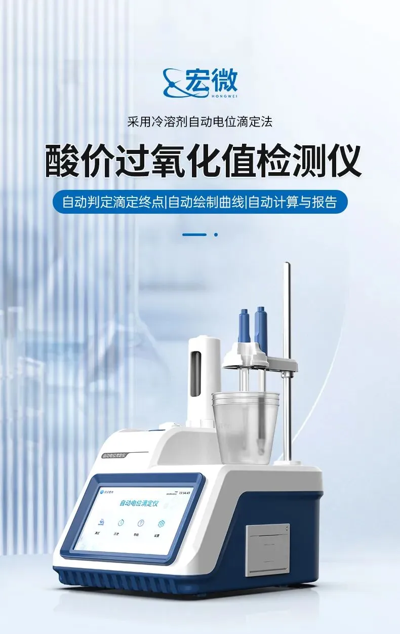 宏微睿仪 HW-DAP 酸价过氧化值检测仪,以自动电位滴定技术为核心,严格遵循国家标准,具备高精度、智能化、易操作等特点,广泛应用于食品油脂及含油制品的检测场景。其完善的硬件配置、灵活的操作系统、合规的数据管理能力,使其成为食品企业、质检机构与科研单位进行油脂氧化稳定性分析的理想工具。通过本白皮书的系统梳理,旨在为用户提供全面的产品认知与选型参考,助力检测工作标准化与高效化。