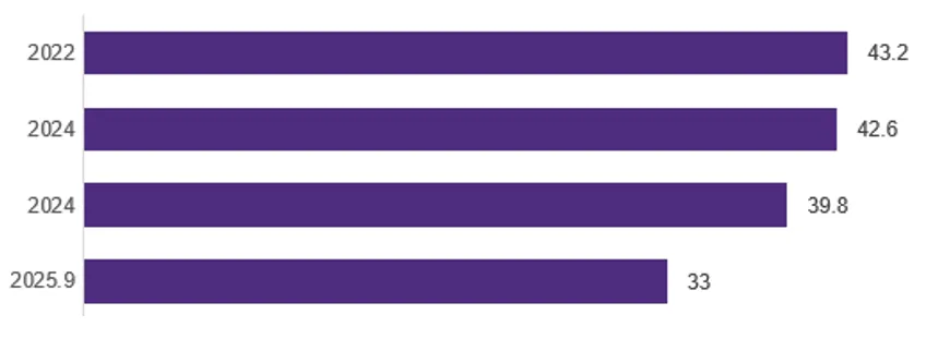 2025年前三季度,全国餐饮人均客单价为33元,较2022年下降23.6%。受“禁酒令”等因素影响,对商务活动、工作宴请依赖度更高的中式正餐人均消费降幅达41.3%,远超其他品类。根据统计,北京是唯一客单价仍然过百元的城市,此外除上海的人均客单价超过70元以外,其他城市均在50元及以下级别。客单价持续下滑,叠加社保新规、外卖大战、抵制预制菜等众多因素的影响,传统餐饮企业的盈利能力堪忧 。