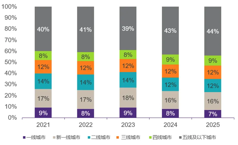 2、餐饮市场门店分布进一步向三线及以下城市下沉