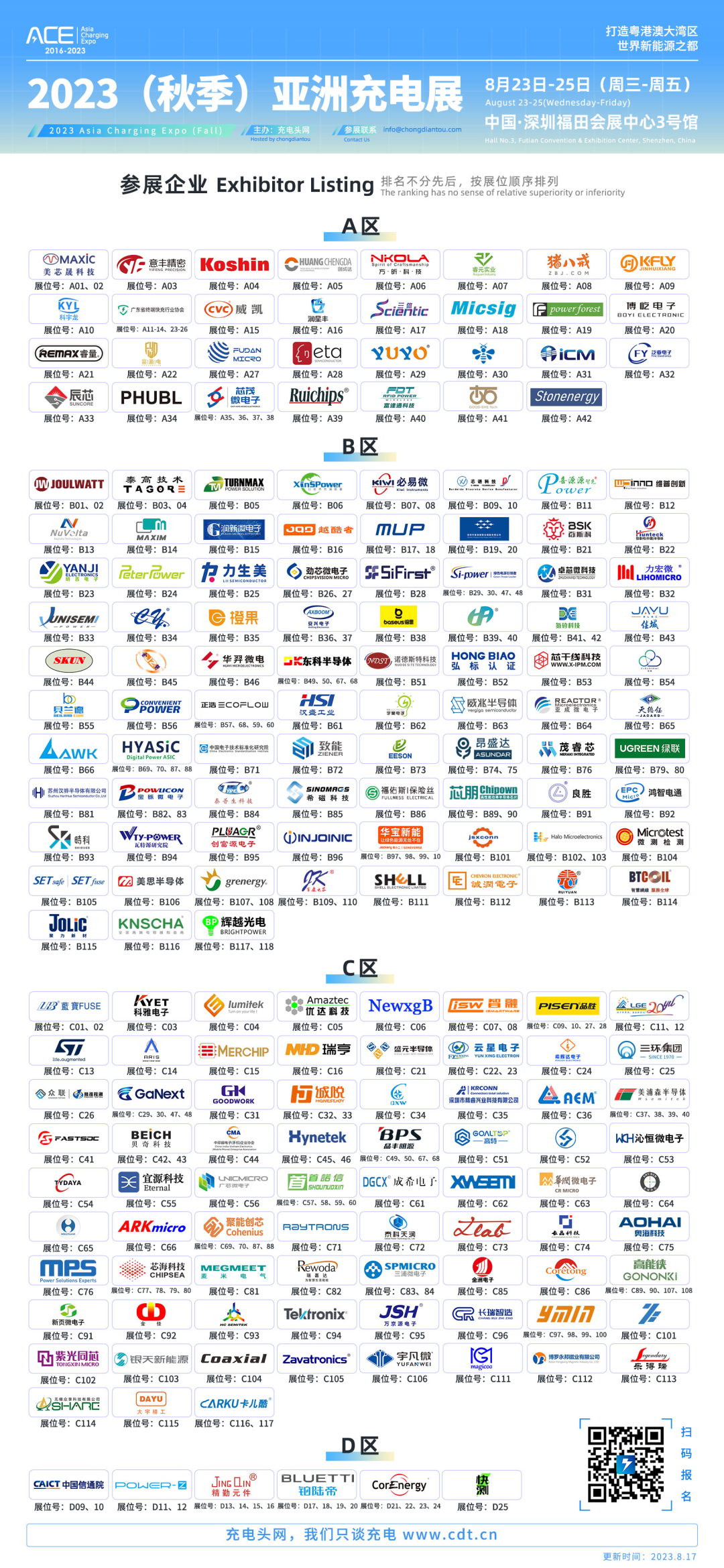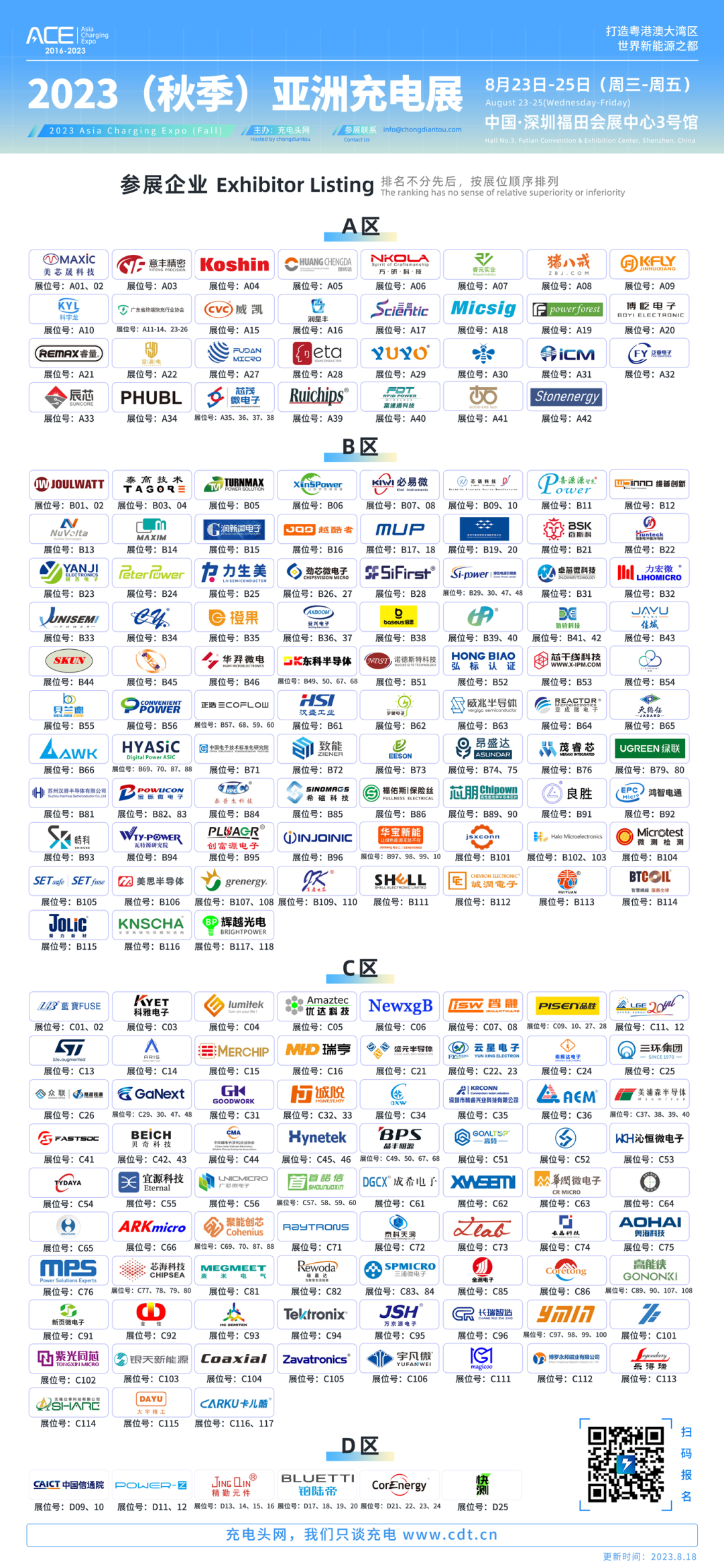 2023(秋季)亚洲充电展将于8月23日-25日在深圳福田会展中心3号馆举办,目前已有近200家知名充电行业企业报名参展。