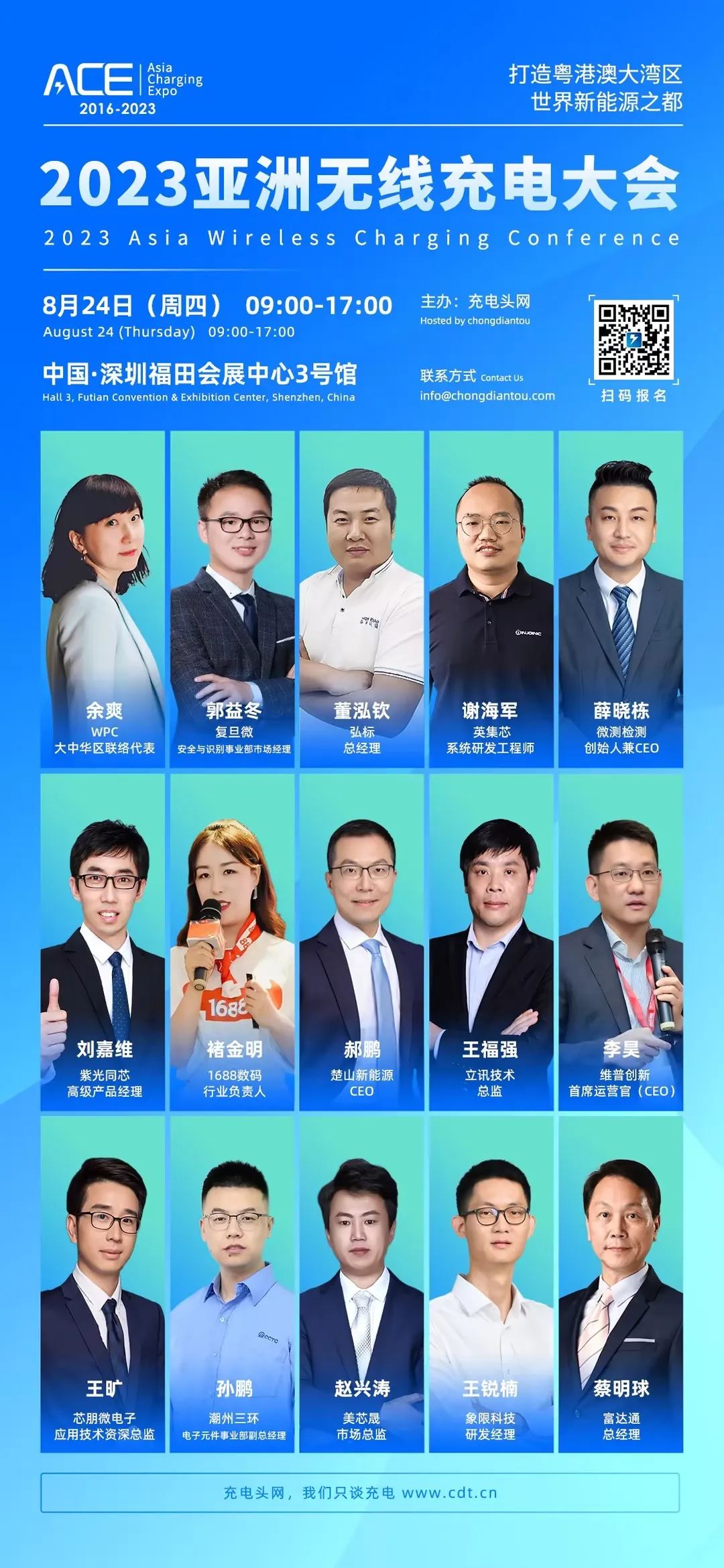 此次2023(秋季)亚洲充电展期间,8月24日(周四)同期举办2023亚洲无线充电大会,届时将有多家芯片和方案商企业参展,是您寻找无线充上游优质供应商不可错过的交流机会。