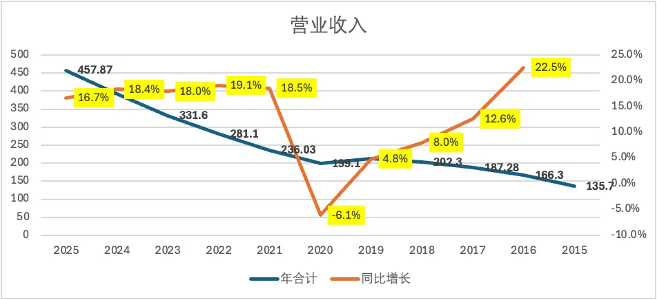 2025年,福耀总营收457.87亿元,同比增长16.7%,增速不及2024年的18.4%。
