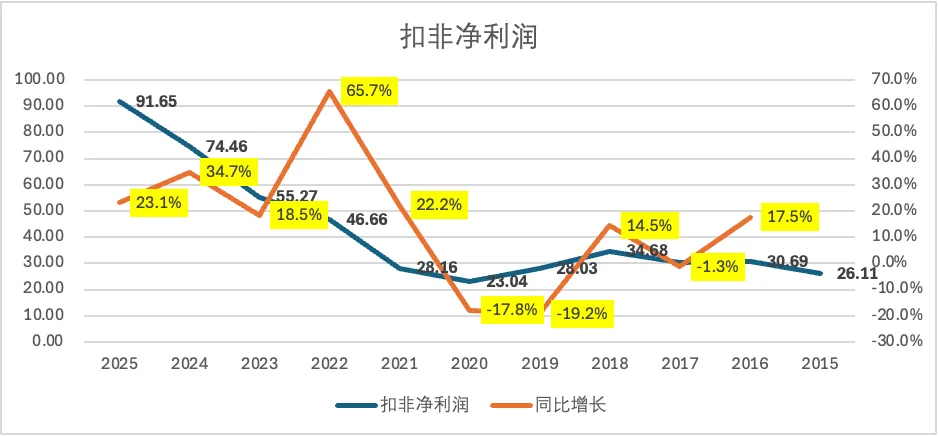 2025年扣非净利润91.65亿元,同比增长23.1%,增速有所放缓,但也是一个非常不错的增速。