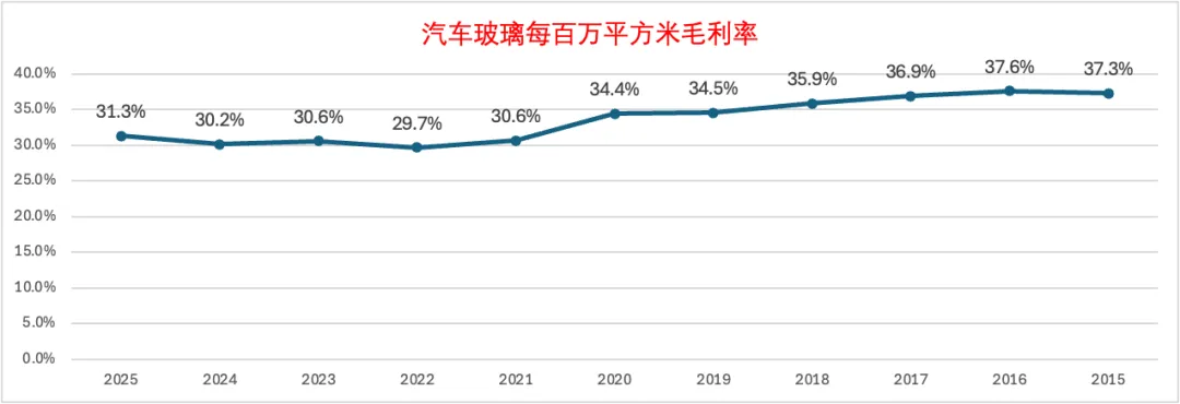 福耀玻璃产品自2021年以来每百万平方米的毛利率呈现持续稳定提高的良好态势。