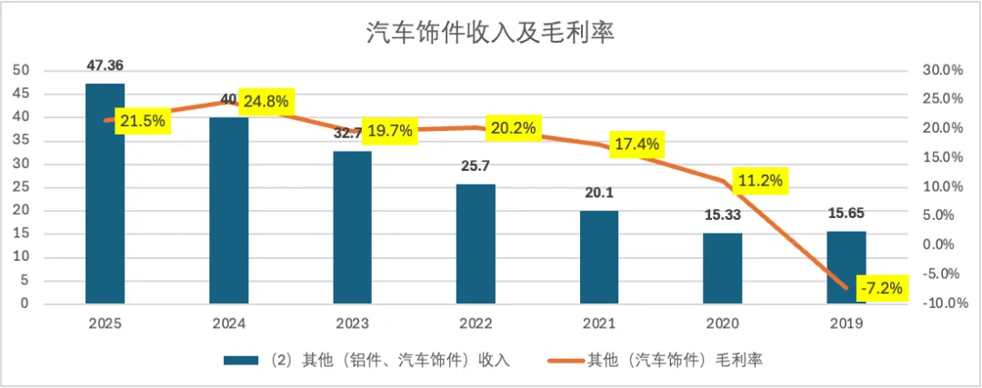 其次看看被福耀玻璃寄予厚望的其他--汽车饰件业务。