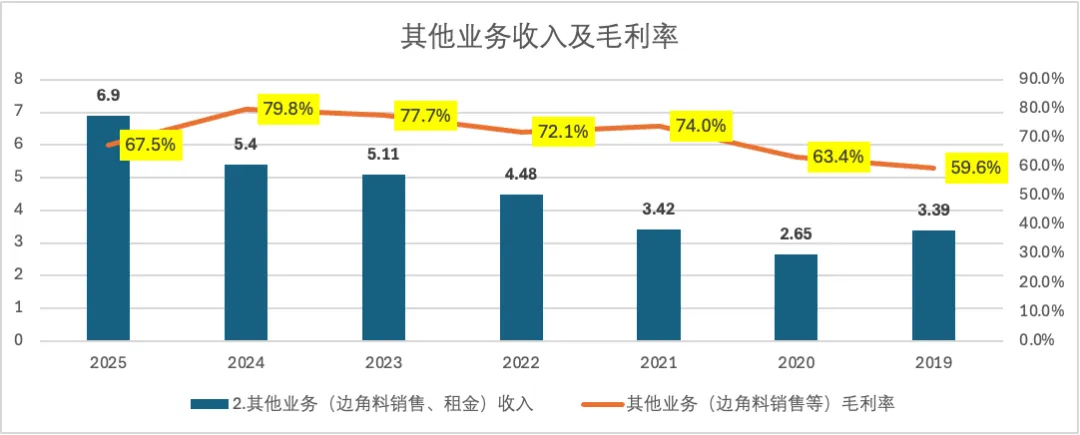 然后,说一下其他业务,也就是玻璃边角料对我销售业务。2025年度营收6.9亿元,毛利率大约67.5%,妥妥的变废为宝的业务。