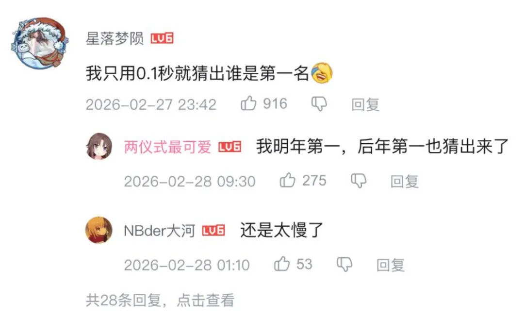 有意思的是,面对这种统治级的数据,玩家群体的反应出奇的平静。在各大社交平台关于年度手游流水排名的讨论区里,你几乎看不到惊叹,最高赞的评论往往是调侃:“我只用0.1秒就猜出谁是第一名”“我明年第一,后年第一也猜出来了”“不出意外的话,今年又是没有意外的一年”。
