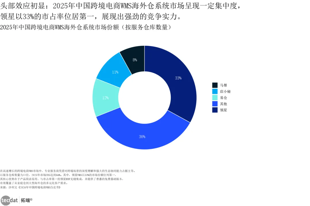 WMS(仓储管理系统)作为海外仓核心,市场规模从2020年13.2亿元增至2025年32.5亿元,预计2029年达78.6亿元,CAGR 24.6%。领星以33%份额居首,易仓、店小秘紧随其后。