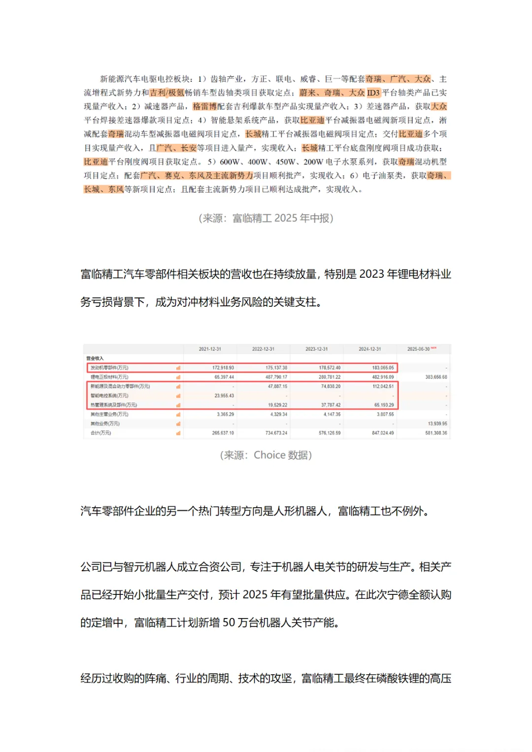 除了在磷酸铁锂领域的布局,富临精工还向新能源汽车智能电控方向转型,拓展热管理系统、电驱动系统等集成模块。公司已与智元机器人成立合资公司,专注于机器人电关节的研发与生产,预计2025年有望批量供应。