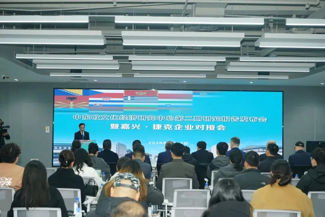 3月18日上午,中东欧文化经济研究中心第二期研究报告发布会暨嘉兴·捷克企业对接会在嘉兴市对外开放服务中心举办。中东欧文化经济研究中心特聘教授、匈牙利驻沪领事馆前总领事Szilard Bolla,捷克贸易促进局中国东南办事处(上海)区域主管、总监Jan Zapletal,嘉兴大学副校长周宏伟,嘉兴市外办主任王建峰,嘉兴市外办副主任李初,嘉兴市工商联专职副主席(副会长)鞠峰出席会议,嘉兴市工商联所属商协会20余家相关企业代表参加会议。会议由嘉兴大学外国语学院教授、嘉兴大学中东欧文化经济研究中心研究员肖欢主持。