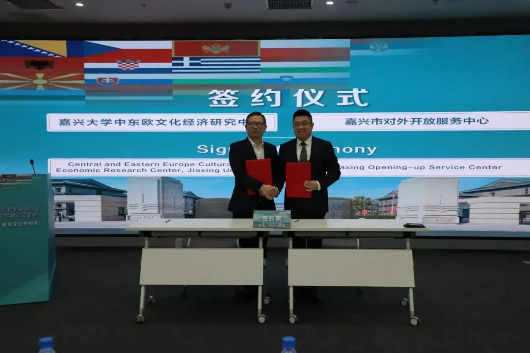 嘉兴大学中东欧文化经济研究中心与嘉兴市对外开放服务中心签订了战略合作框架协议。