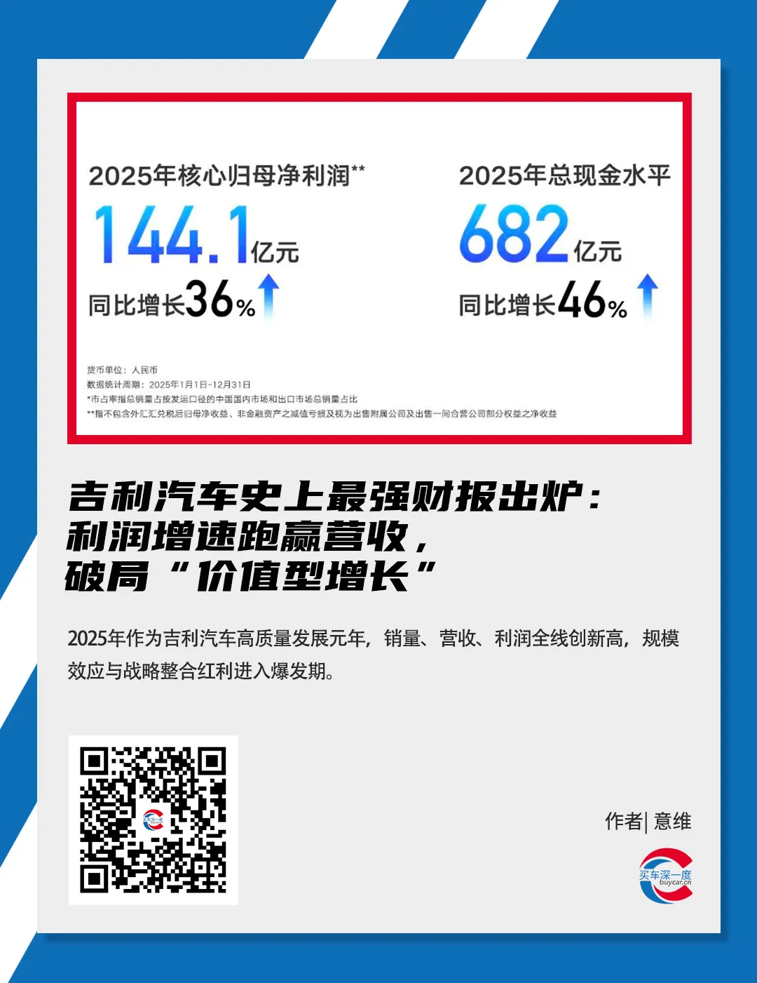 接下来,随着极氪8X与9X构筑豪华双旗舰、全固态电池的装车验证、以及全域AI技术的规模化落地,吉利不仅要在销量上向345万辆迈进,更要在资本市场上完成从“整车制造商”向“智能科技引领者”的估值重塑。这是一份财报的终点,更是吉利穿越周期、引领行业变革的新起点。