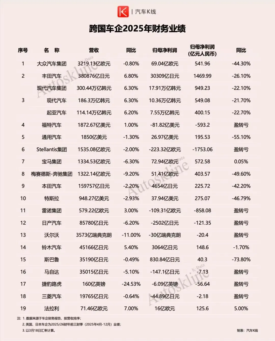 汽车巨头们像约好了一样,相继扔出2025年财报。那场面,简直是比惨大会现场。