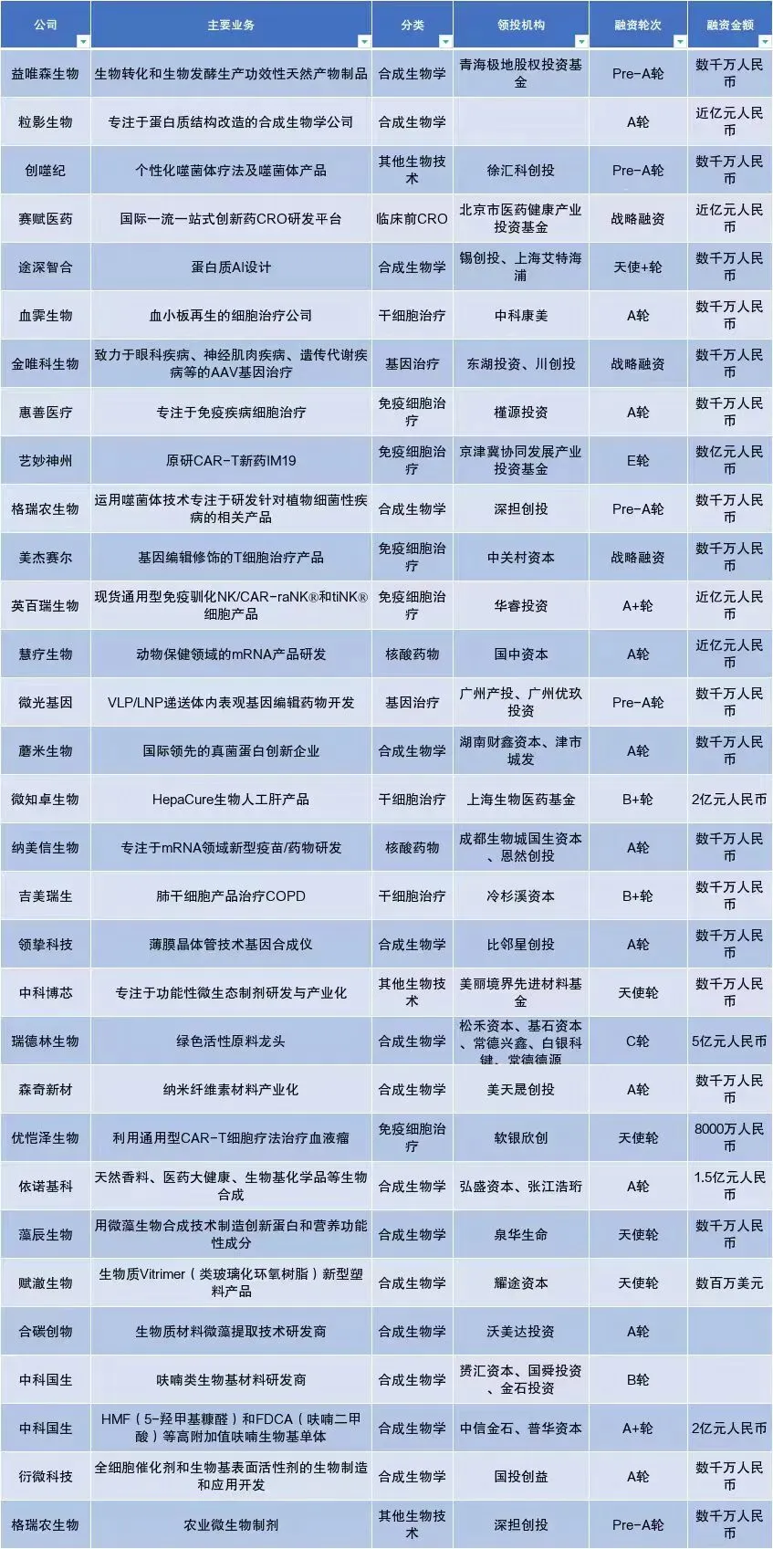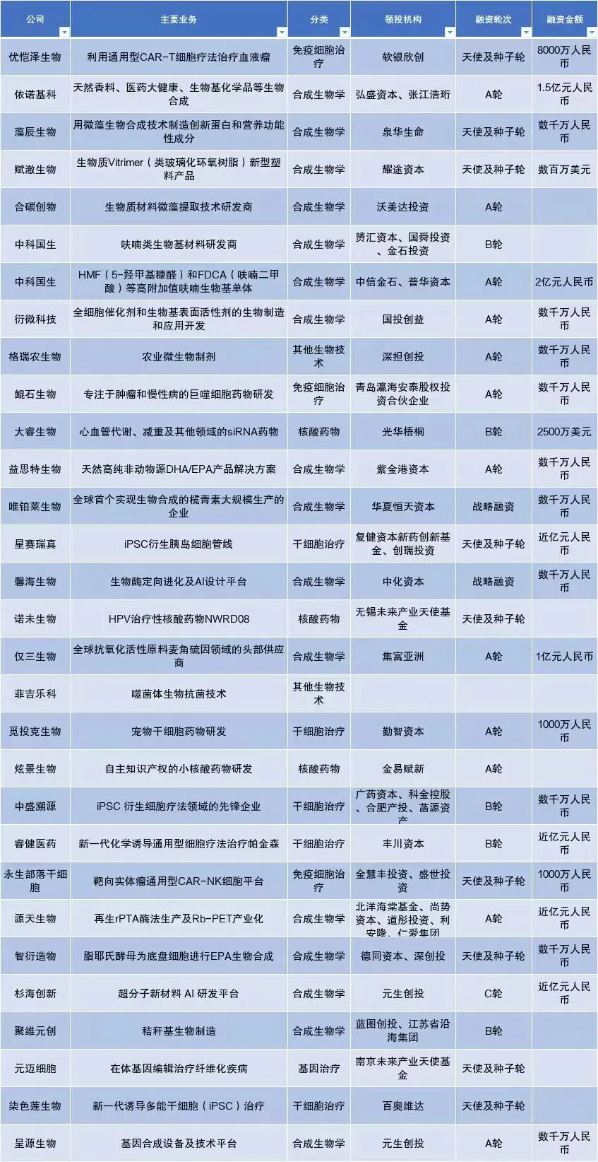 合成生物学拿了最多的融资,这在意料之中。但仔细看这批拿钱的公司,发现它们有一个共同点——手里都攥着实打实的产品。