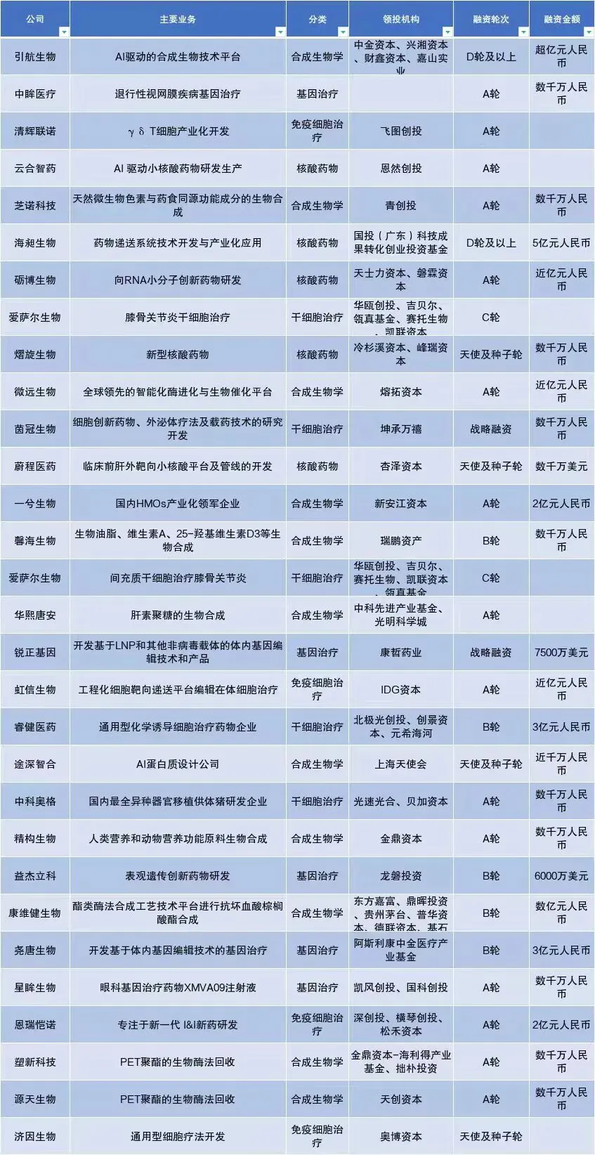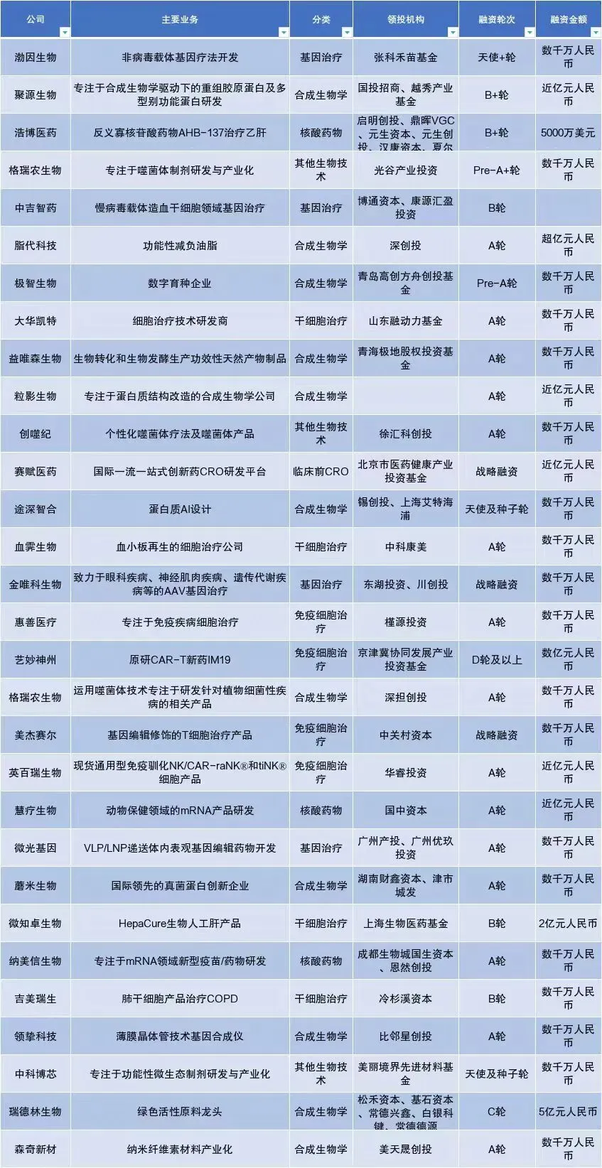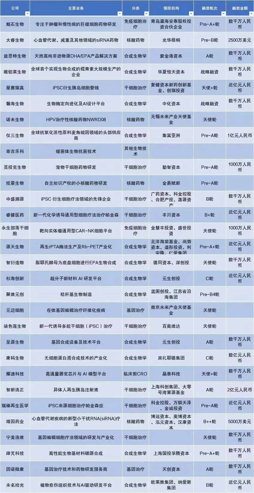 翻完2025年这一百多家生物技术公司的融资清单,有个感受挺强烈:这行正在经历一场无声的洗牌。