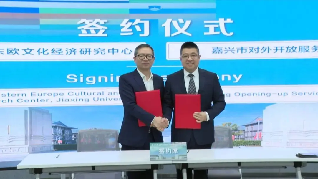现场还进行了嘉兴大学中东欧文化经济研究中心与嘉兴市对外开放服务中心战略合作框架协议签约仪式。双方将持续深化嘉兴与中东欧国家在文化、经济领域的交流与合作,充分发挥高校智库的研究优势与政府服务机构的平台优势,共同服务嘉兴企业和人员“走出去”开拓中东欧市场。