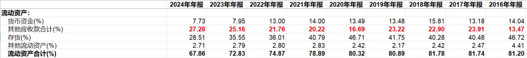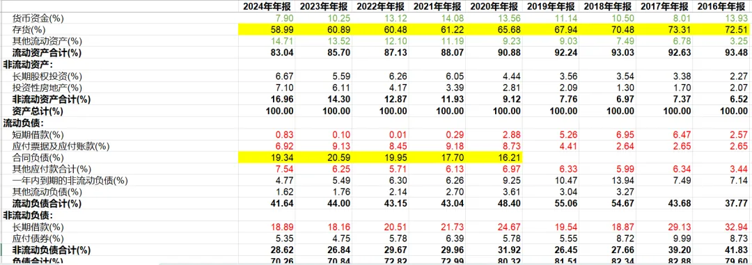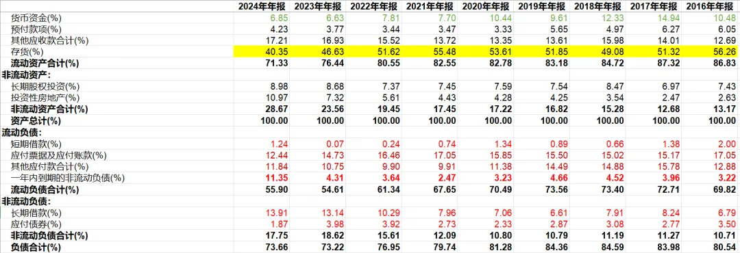 | 存货占比 | 2024 | 2023 | 2022 | 2021 | 2020 |